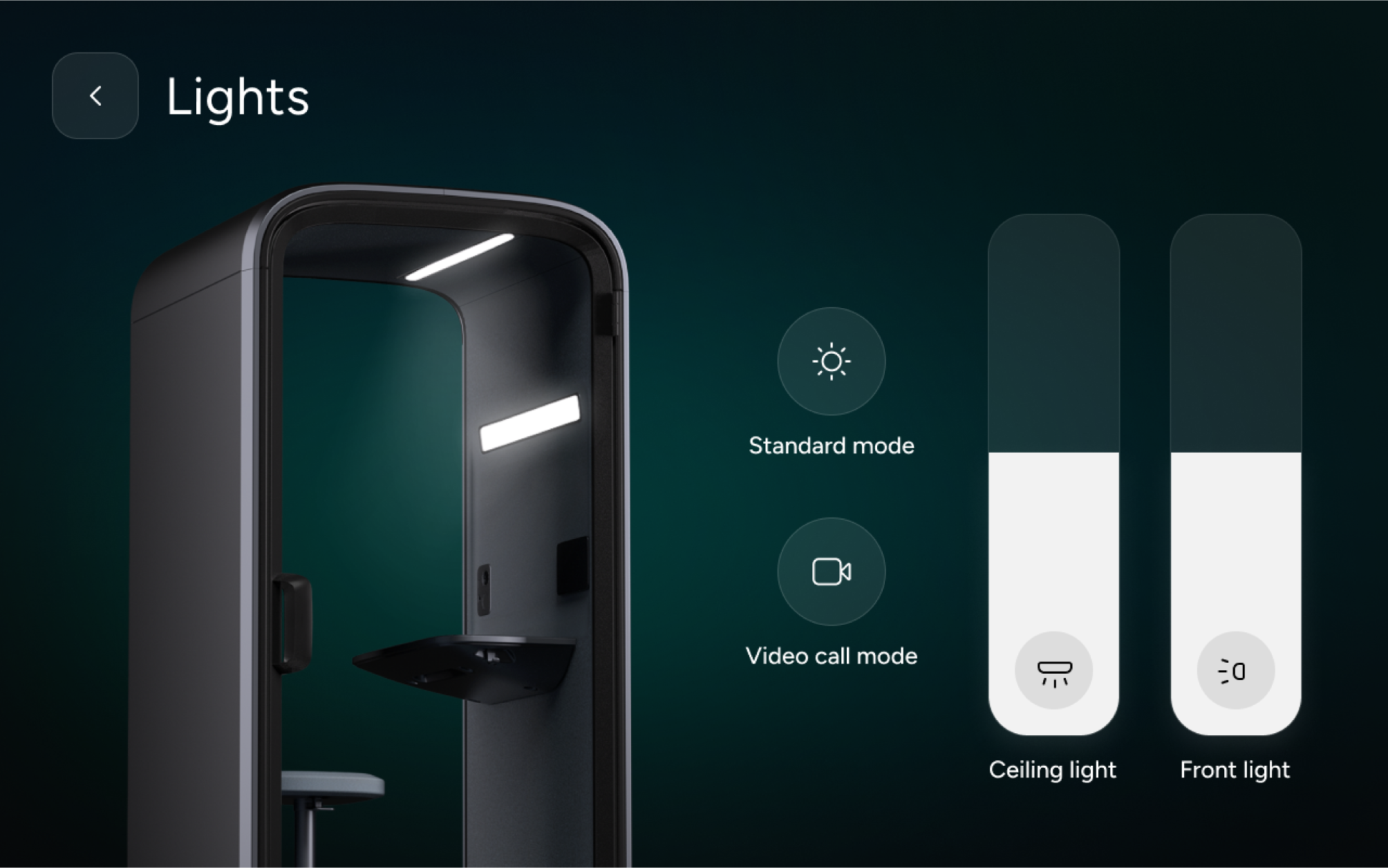 Las luces se ajustan automáticamente a un brillo adecuado tanto para trabajar en la cabina como para realizar videoconferencias.